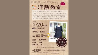 イベント 初心者さん歓迎|ノウハウを楽しく学べる洋裁教室を開催します【山下手芸店】