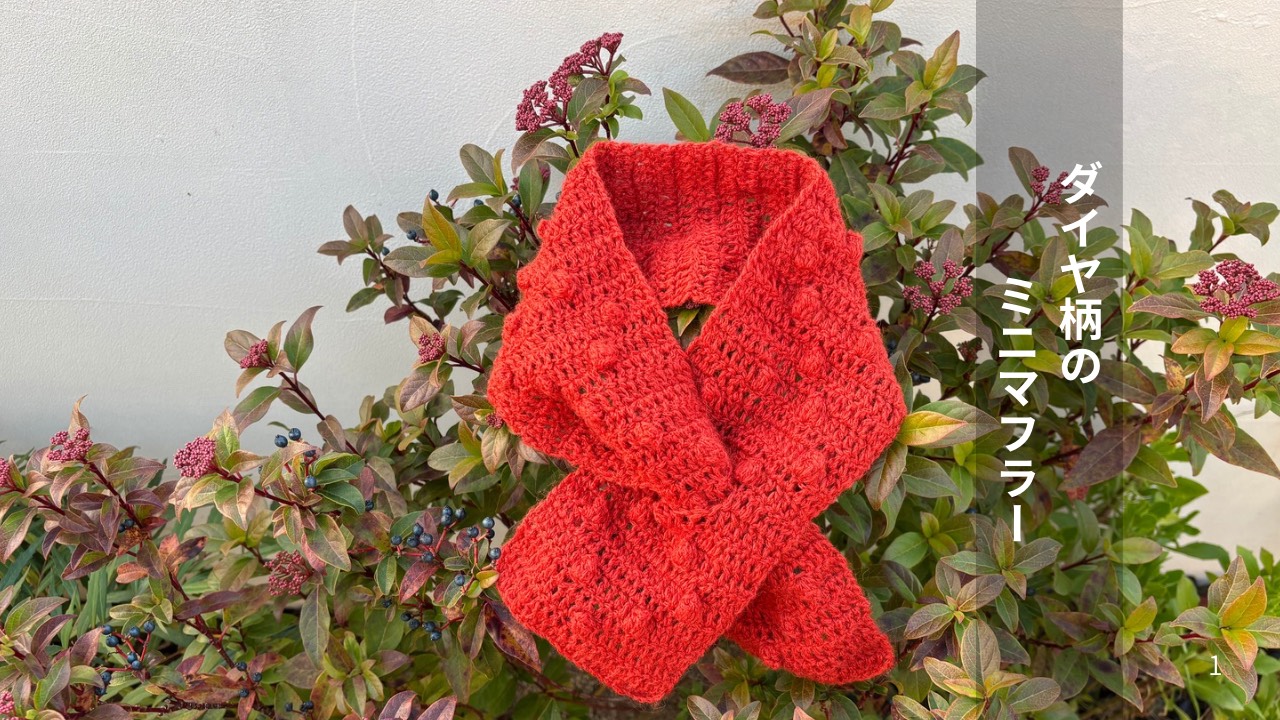 今回は、ダイヤ柄模様のミニマフラーをご紹介します。